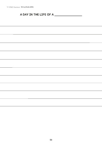 Y1 ENG Summer Writing Words (WW) A DAY IN THE LIFE OF A ___________________ 58