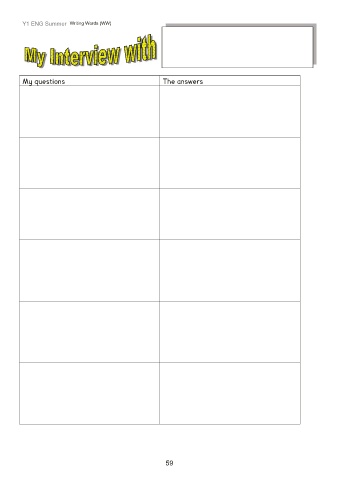 Y1 ENG Summer Writing Words (WW) My questions The answers 59