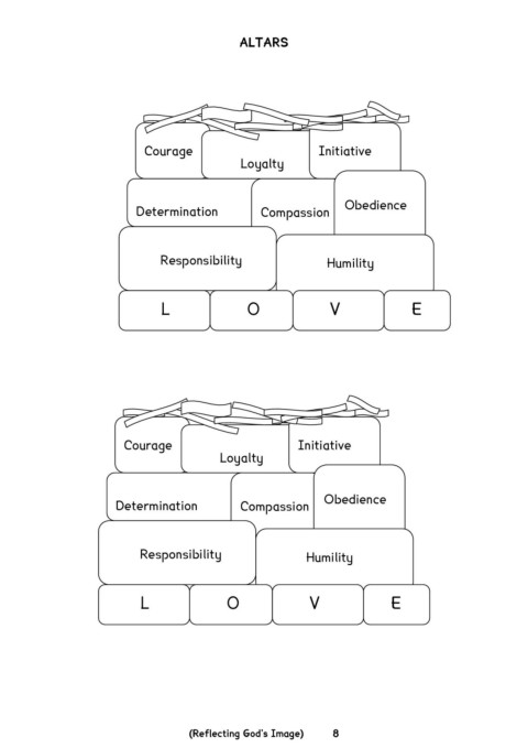 ALTARS Courage Initiative Loyalty Determination Compassion Obedience Responsibility Humility L O V E Courage Initiative Loyalty Determination Compassion Obedience Responsibility Humility L O V E (Reflecting God's Image) 8