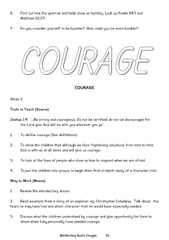 3. Discuss what the children understand by courage and give opportunity for them to
