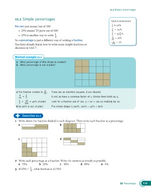 1 Write down the fraction shaded in each diagram. Then write each fraction as a percentage.