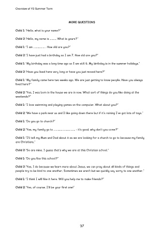 Child 2: “Yes, my family go to ……………………………… - it’s good, why don’t you come?”