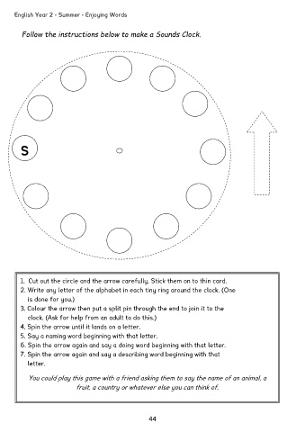 6. Spin the arrow again and say a doing word beginning with that letter.
