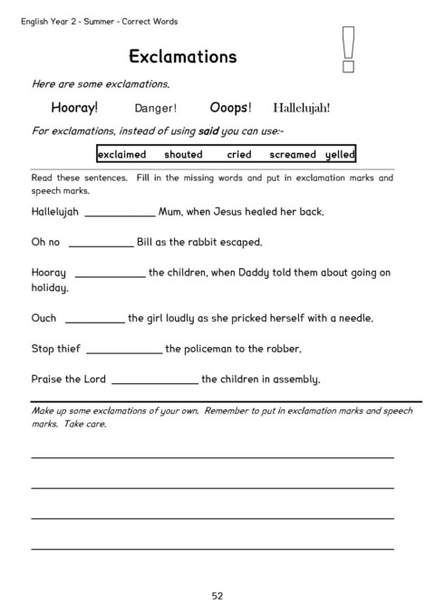 Make up some exclamations of your own. Remember to put in exclamation marks and speech