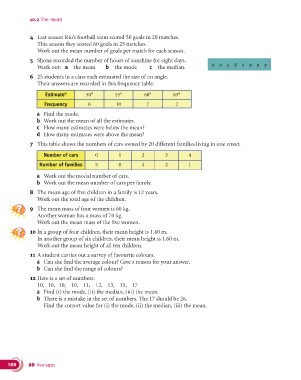 Work out: a the mean b the mode c the median. 6 0 5 8 2 9 9 9