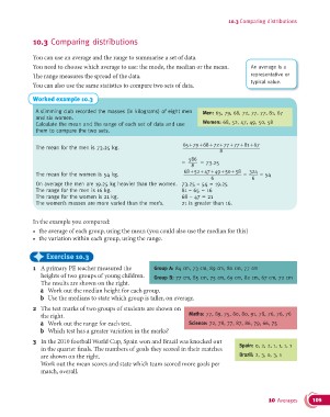 On average the men are 19.25 kg heavier than the women. 73.25 − 54 = 19.25
