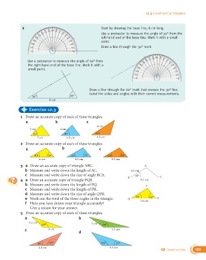 4 a Draw an accurate copy of triangle PQR. B 8.7 cm