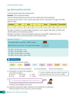 You can write the number 12.56 in a place-value table, like this. Th e position of a digit in the table