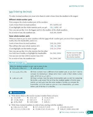 When you have to put in order numbers with the same whole-number part, you must fi rst compare the