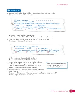1 Eira asks people in her village to fi ll in a questionnaire about their local dentist.