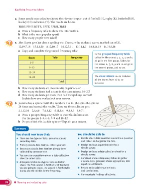 sheet to collect data. ★ Construct and use frequency tables to gather