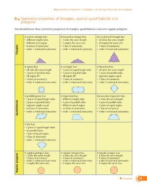 8.4 Symmetry properties of triangles, special quadrilaterals and polygons