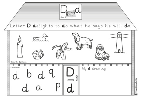 Letter D delights to do what he says he will do. Colour the d pictures. Circle the d’s. q D My d drawing d b d d a p d