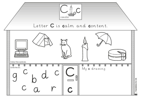 Letter C is calm and content. Colour the c pictures. Circle the c’s. c c My c drawing g b d C c a r c