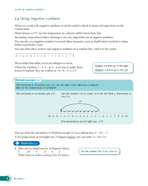 The temperature at midday was 3 °C.     Use the number line to count 10 to the left from 3. Remember to
