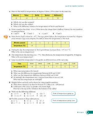6 The temperature this morning was −7 °C. This afternoon, the temperature dropped by 10 degrees.
