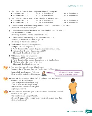d $32 in the ratio 5 : 3 e $66 in the ratio 6 : 5 f $90 in the ratio 7 : 3