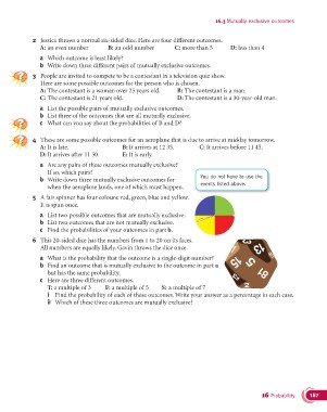 b Find an outcome that is mutually exclusive to the outcome in part a
