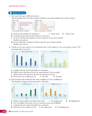 The pictograms show how the students in Mari’s class and in Aiden’s class travel to school.