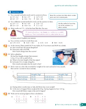 3  Alicia works out 7.5 + 4.8 in her head like this. She says: