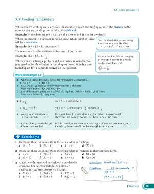 Example: 163 ÷ 12 = 13 7 You can think of this as changing
