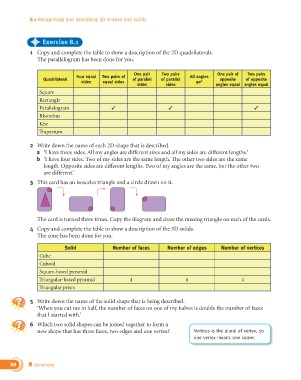 1 Copy and complete the table to show a description of the 2D quadrilaterals.
