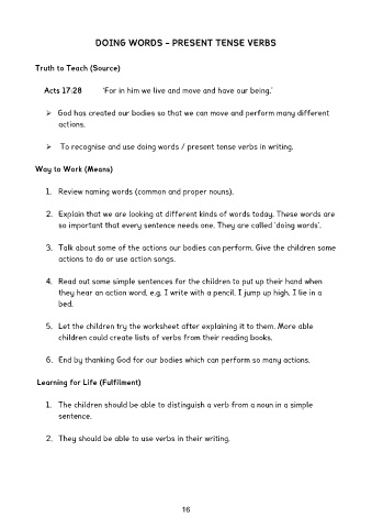 1. The children should be able to distinguish a verb from a noun in a simple