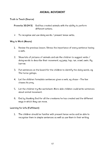 2. Show lots of pictures of animals and ask the children to suggest verbs /