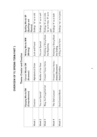 OVERVIEW OF Y1 SPRING TERM PART 1 Theme: Creator and Creation 1
