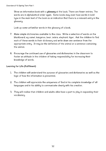 1. The children will understand the purpose of glossaries and dictionaries as well as the