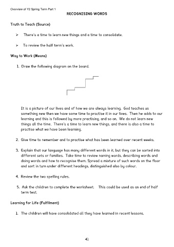 2. Give time to remember and to practise what has been learned over recent weeks.