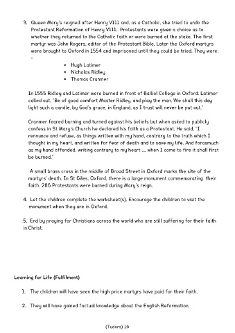 martyrs’ death. In St Giles, Oxford, there is a large monument commemorating their