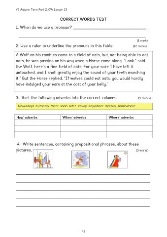 2. Use a ruler to underline the pronouns in this fable. (12 marks)