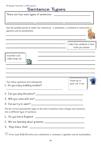 ¥ From Luke 8:22-25 write out a statement, a command, a question and an exclamation.