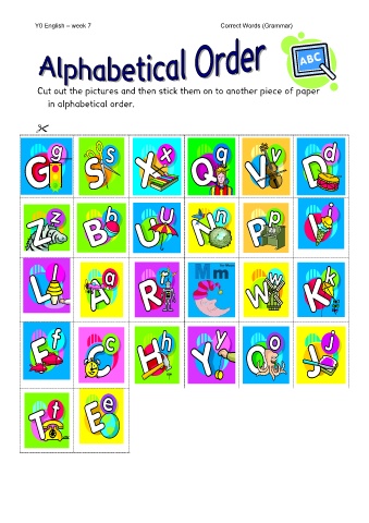 Y0 English – week 7 Correct Words (Grammar) Cut out the pictures and then stick them on to another piece of paper in alphabetical order.