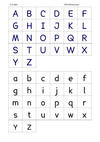 Y0 English WW (Writing words) A B C D E F G H I J K L M N O P Q R S T U V W X Y Z a b c d e f g h i j k l m n o p q r s t u v w x Y Z