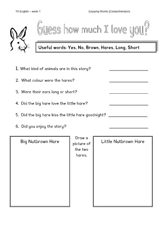 Y0 English – week 1 Enjoying Words (Comprehension)