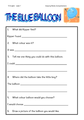 Y0 English – week 7 Enjoying Words (Comprehension)
