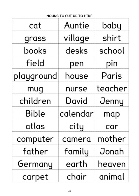 NOUNS TO CUT UP TO HIDE