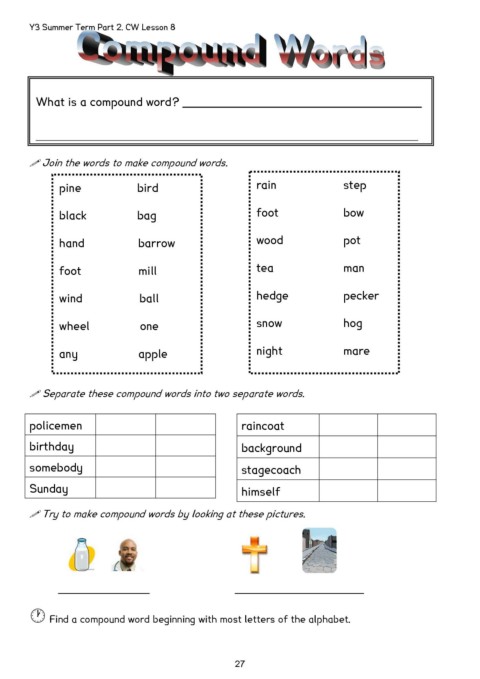 Try to make compound words by looking at these pictures.