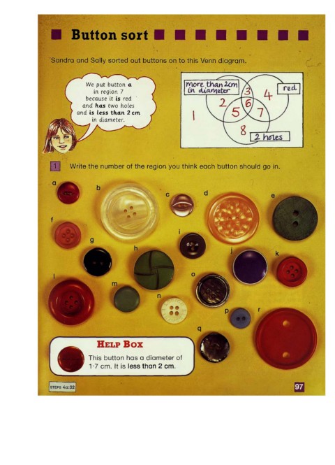 Sondra and Sally sorted out buttons on to this Venn diagram.