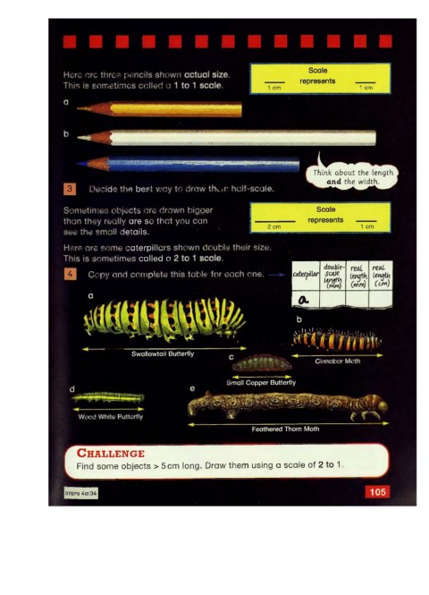 Find some objects > 5cm long. Draw them using a scale of 2 to 1
