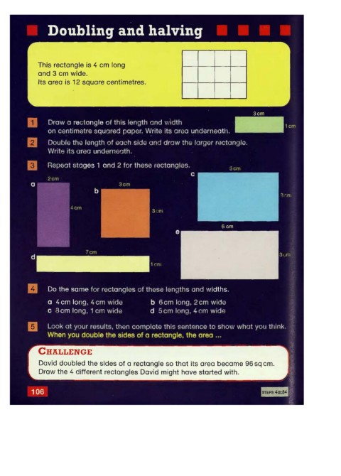 David doubled the sides of a rectangle so that its area became 96sqcm.