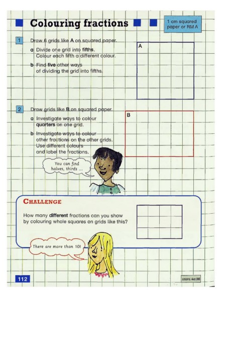 olourinq fractions 1 cm squared paper or RM A You can find halves, thirds ... CHALLENGE How many different fractions can you show by colouring whole squares on grids like this? There are more than 10!