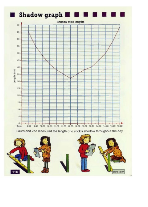 Laura and Zoe measured the length of a stick's shadow throughout the day.