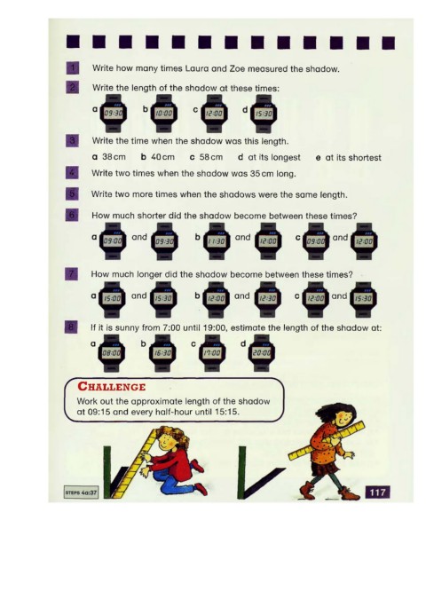 If it is sunny from 7:00 until 19:00, estimate the length of the shadow at: