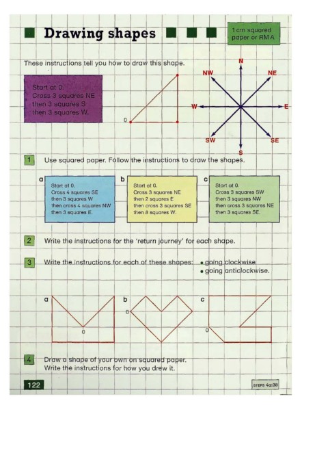 Write the instruct ons for th 'return journey' for eac i shape