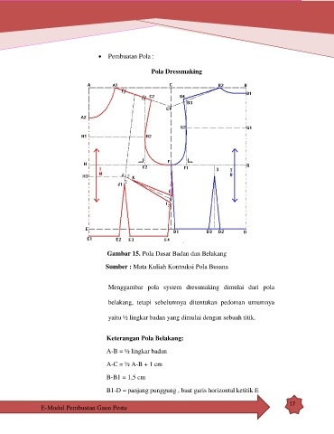 B1-D = panjang punggung , buat garis horizontal ketitik E
