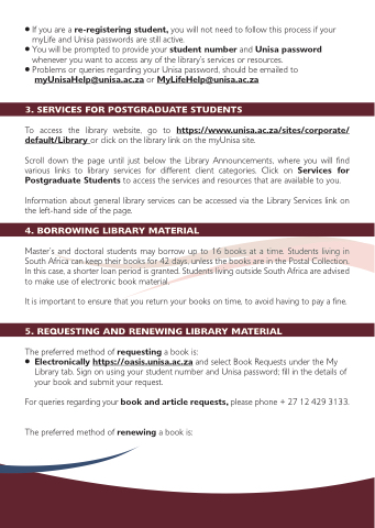 • If you are a re-registering student, you will not need to follow this process if your myLife and Unisa passwords are still active.