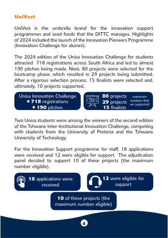 UniVest is the umbrella brand for the innovation support programmes and seed funds that the DITTC manages. Highlights of 2024 included the launch of the Innovation Pioneers Programme (Innovation Challenge for alumni).